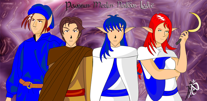 Paussin, Merlin, Naldus e Lavië Desenhado em 2008 Programas usados: Corel Draw e Photoshop