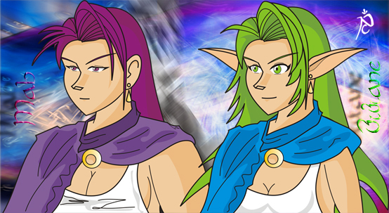 Mab, Protetora dos humanos e drows de Celtiland Viviane, Protetora dos elfos de Celtiland Desenhado em 2008 Programas usados: Corel Draw e Photoshop